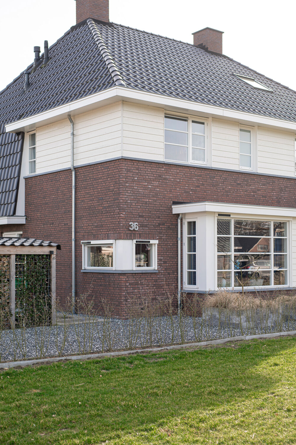 In Nunspeet hebben we deze riante 2-onder-1-kap woning gerealiseerd. Het ontwerp is strak vormgegeven en biedt veel leefruimte op elke verdieping. Doordat de woningen zijn afgewerkt met veel lichte houtaccenten, geeft het als geheel een warme, frisse aanblik. Kijk ook even naar de overstekken, raampartijen en erkers, het maakt de dubbele woning helemaal af.